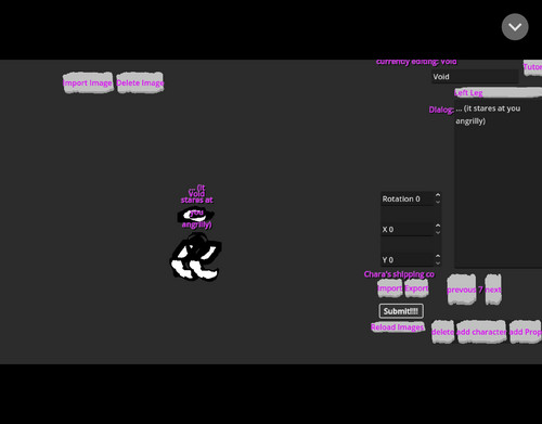 Ok so um, major update, we got rid of the reload button (all the code for it is gone but the button itself isn’t, will get rid of it before releasing beta) We may now do the highlighted feature of the game, inwhich you can import 1 image at a time to a specific part.